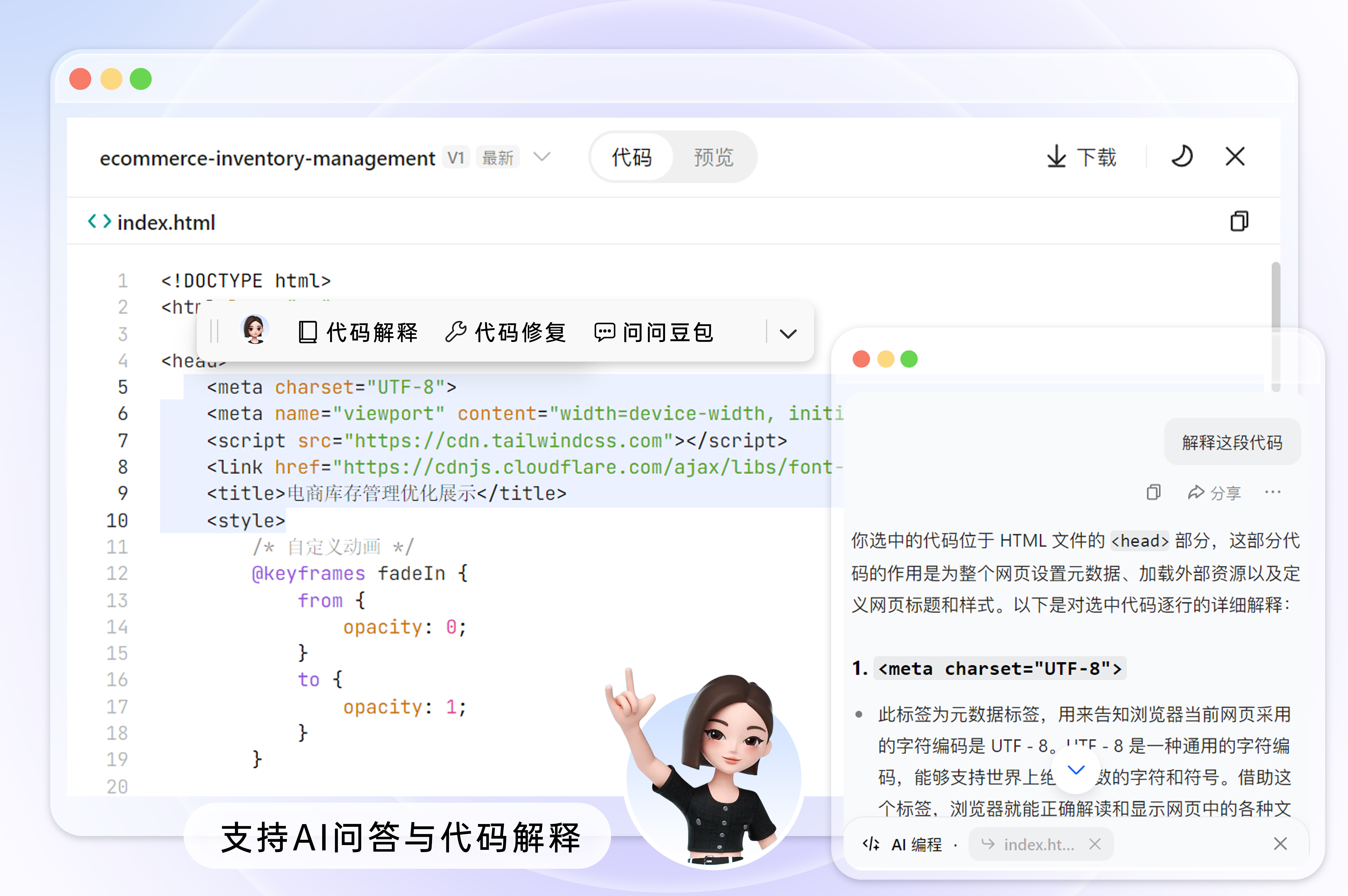 豆包「AI编程助手」 「免费AI编程」让开发更快捷、简单且安全